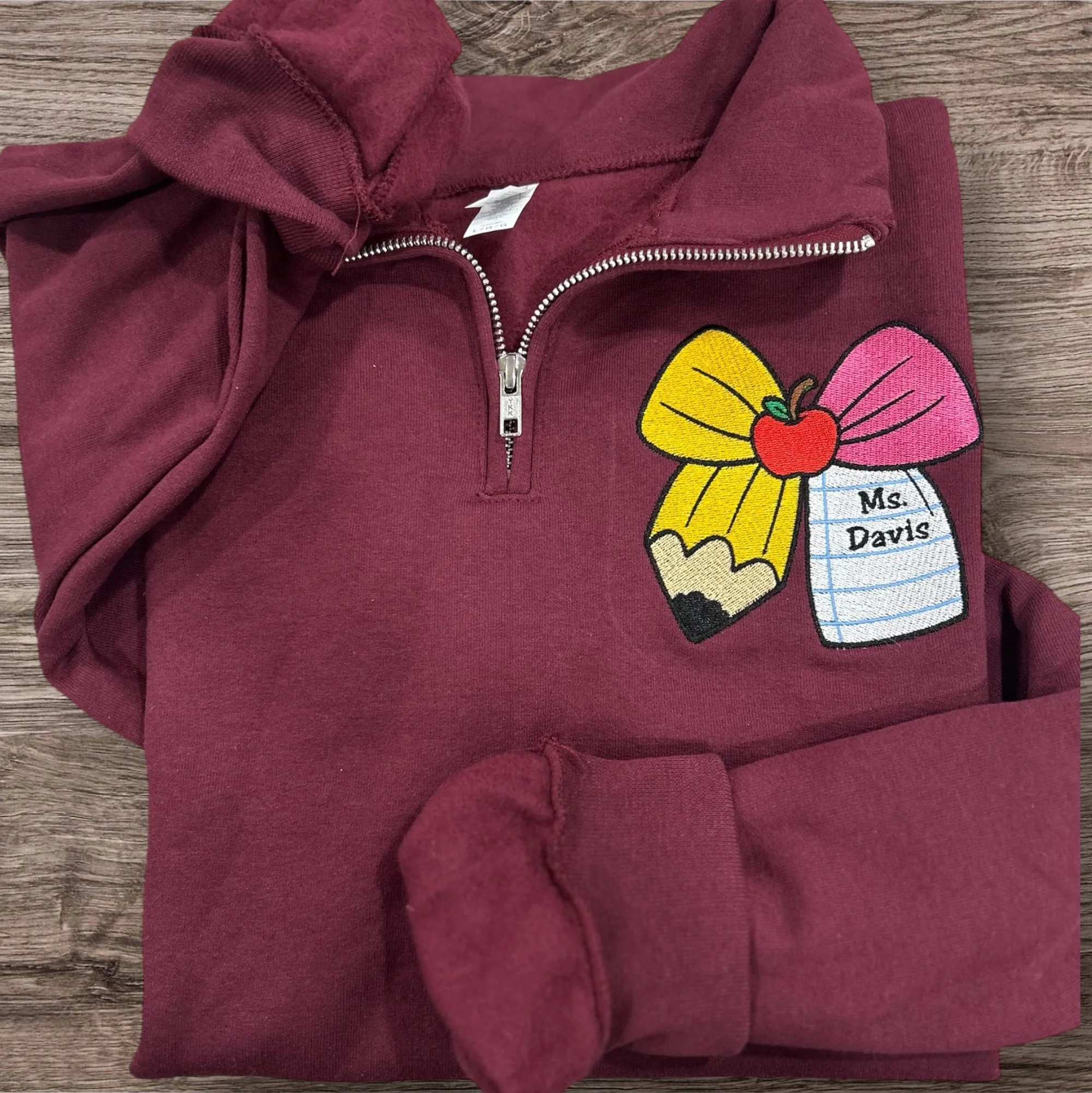 Show your appreciation in the coziest, most personal way! Our Personalized Teacher Quarter Zip Sweatshirt is embroidered just for you (or your favorite educator) with their name or title. Soft, durable, and perfectly warm for the classroom, this quarter zip makes the sweetest teacher gift — practical, stylish, and truly one-of-a-kind.