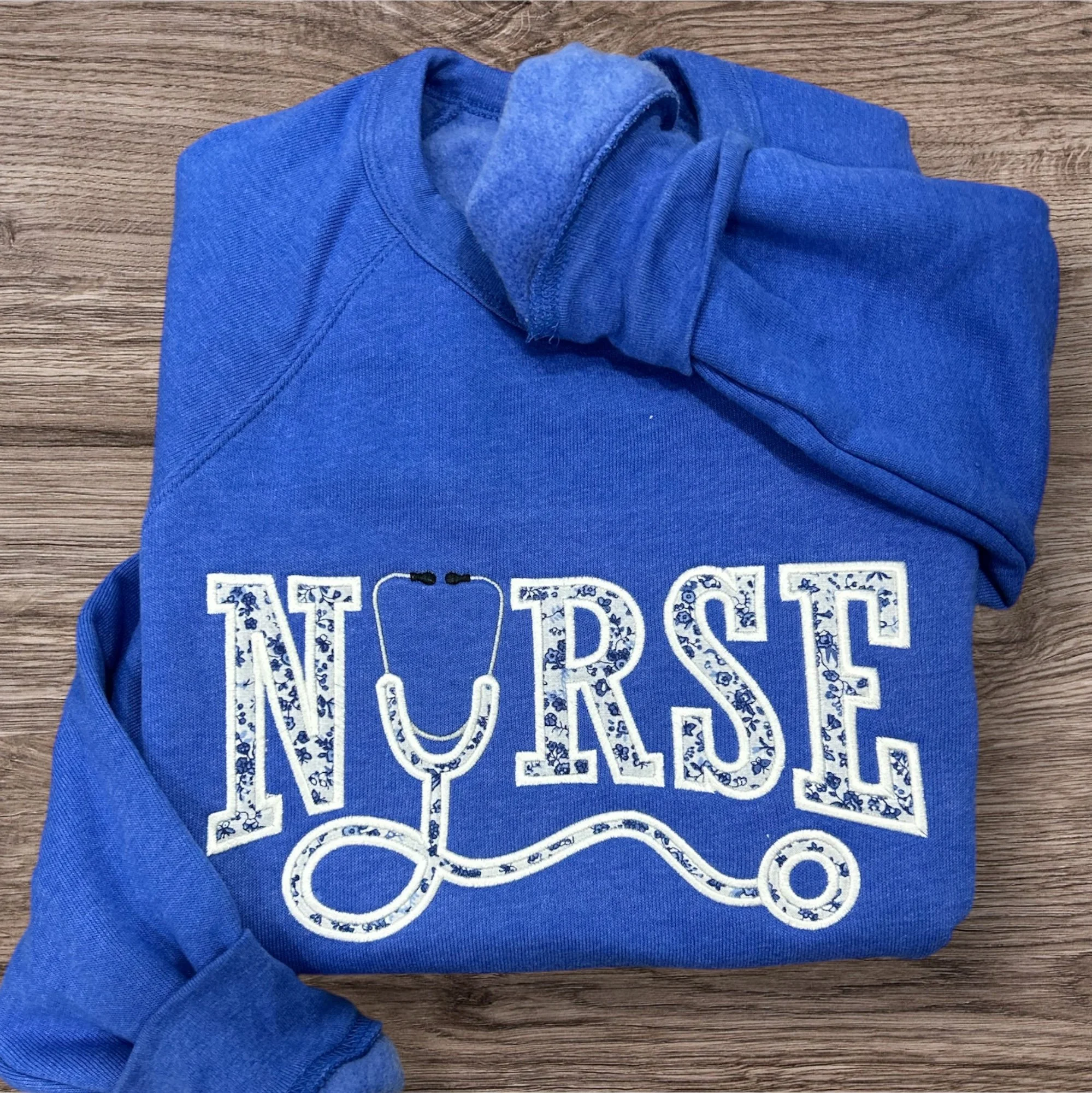 Nurse Applique Sweatshirt – Custom Bella Canvas® Crewneck – Choose Applique Fabric, Thread Color & Sweatshirt Color